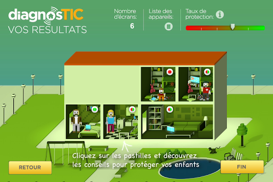 diagnosTIC* : une application simple et ludique qui vous permet de faire le point sur l'équipement "technologique" de votre famille et de visualiser les mesures de protection que vous avez mises en place pour protéger vos enfants des risques liés à l'utilisation des TIC. Selon votre propre diagnosTIC, des conseils et mesures pratiques vous seront proposés.