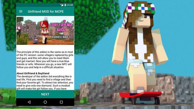 Find your girlfriend for Minecraft PE with the best MOD. Do not be a forever alone and create your girlfriend to keep you company, you can go for a walk with her in the virtual world of Minecraft.