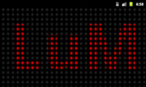 UPGRADE TO PRO VERSION, NO ADS AND MORE CUSTOMIZATION AVAILABLE!!! In LiTE version you can have: - only red text color; - only black background color; - only one led shape; - only medium speed; - ads.