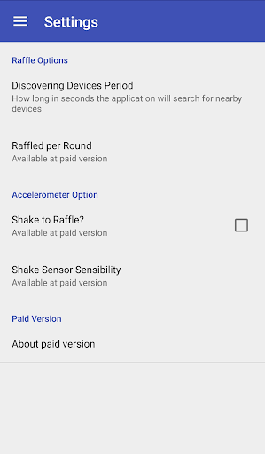 Bluetooth Raffle can select an amount of lucky ones with a push of a button. First, ask your audience to turn on Bluetooth, wait a few minutes to get all avaiable devices and raffle! You can use it in lectures, events, exchange of gift among friends and much more!
