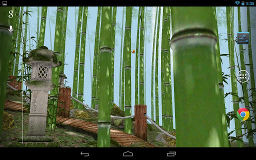 3D scene of calm bamboo forest comes to your Android devices. Trees and plants slowly wave with gentle wind; occasional butterflies will fly through warm sun rays. The view rotates reacting to your gestures and home screen changes, revealing the different angles of serene forest.
