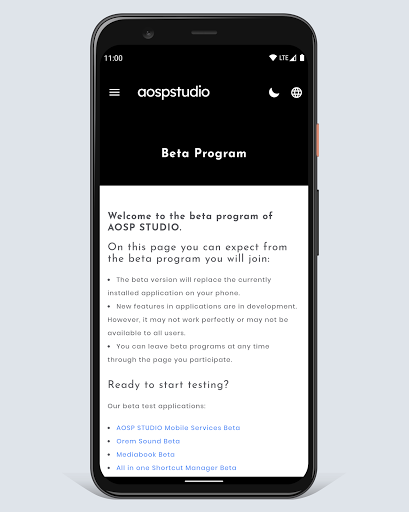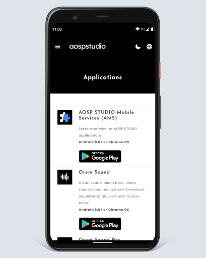 * Application market; The android mobile apps developed by AOSP STUDIO or with partners are listed here.