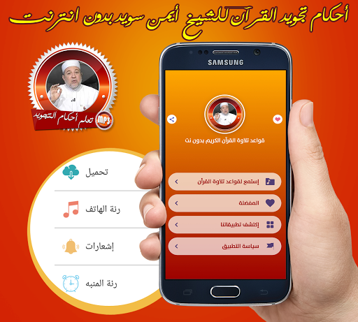 ❇ايمن سويد احكام التجويد بدون نت صوت وبجودة عالية في تطبيق مميز بخصائص متعددة تضمن سهولة الانتفاع بدروس تعليم احكام التجويد كاملة للشيخ ايمن سويد بدون انترنت