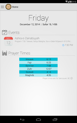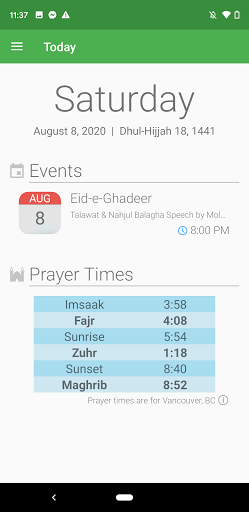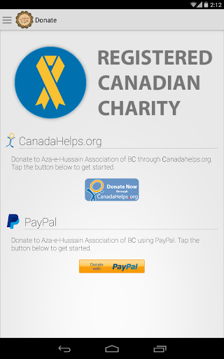 Users may also donate to Aza-e-Hussain Association of BC from within the app.
