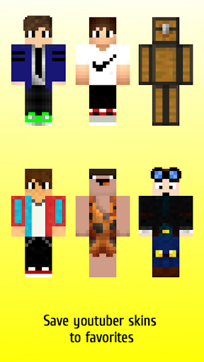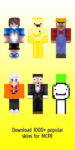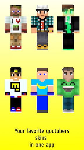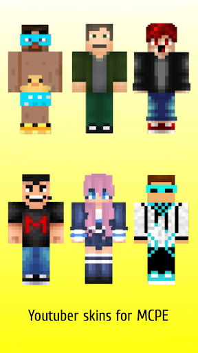 Youtuber skins for mcpe is an unofficial application for Minecraft Pocket Edition (MCPE). This application is not affiliated in any way with Mojang AB. All the Minecraft assets are property of Mojang AB or their respectful owner. All rights reserved. In accordance with http://account.mojang.com/documents/brand_guidelines