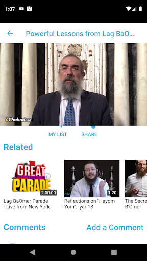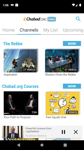 Access thousands of Jewish videos on a wide variety of topics and styles, including Torah classes, sermons and courses and live programming. Includes dozens of specialized channels, including Parshah (weekly Torah portion), Inspiration & Entertainment, Viewpoints, Kosher Food, Documentaries, Israel, Jewish Holidays, DIY, Jewish Music, Kids, the Rebbe and more.