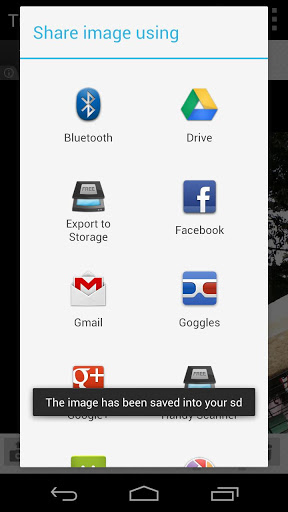 When you Picasso is done, you can share it with Facebook, Twitter and other social networks or just save it on your SD.