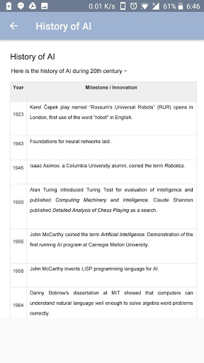 This app will give you the basic idea about the field of Artificial Intelligence. If you want to learn about AI, this is where you should start.