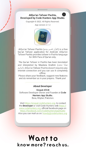 AlQuran Tafsee Pashto (تفسیرالقرآن پښتو) doesn't requires any internet connection and you can use it completely offline. Please share your feedback and new feature requests and do remember us in your prayers!