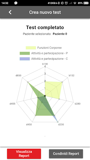 Clinical profiling and evaluation of ICF sets will generate an operating profile and a document based on the ICF classification that can be printed, exported and shared in the most commonly used formats.