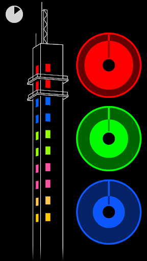 Choose the floors that you want to colour by tapping on a floor or by swiping over the tower. You can deselect floors in the same way. Spin the colour wheels to colour the selected floors. You can create all colours by mixing red, green and blue.