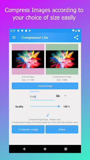 Compressor Lite - Compress Image Size app's main purpose is to compress, crop, resize images into a fixed size as per your requirement and also have the ability to share them to your email, social networking platform easily.