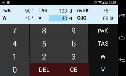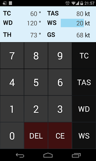 The application allows to calculate true heading (TH) and ground speed (GS) of aircraft from given true airspeed (TAS), true course (TC), and wind direction and speed (WD/WS).