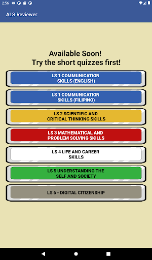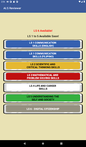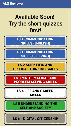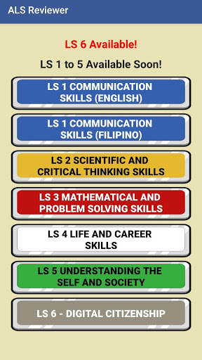 This app will help the students of ALS in reviewing different learning strands to prepare them for the A&E Test.