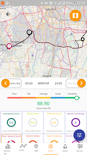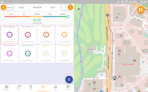 -Calculating the score and show location and time of driver’s behavior parameters in the route
