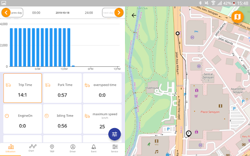 -Show path history with utilization and performance Items like distance, Engine hours, idling time, fuel used, ... with draw item chart in hours of a day