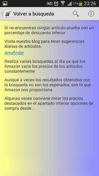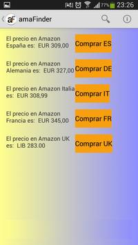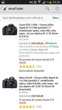 Amafinder is a new application that helps you to find the best discount products in Amazon Spain and other European Amazon stores. You can offer the discount you want for the product you want and Amafinder do the rest. Look on Amazon and you will present intuitive and simple results, like you're in the store of Amazon and not only this, but that before you decide to buy you can compare the price of the product that you have chosen to of the other European Amazon.
