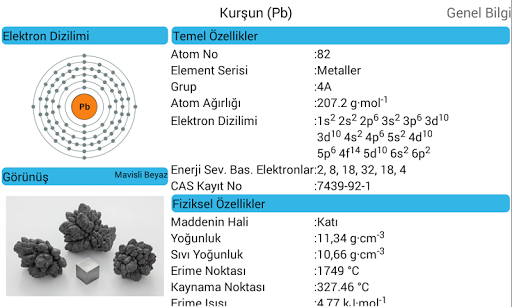 Bilinen tüm kimyasal elementlerin temel özellikleri, elektron dizilimleri, resimleri ve ayrıntılı bilgileri... Main features, electron shell diagrams, pictures and detailed information all of known elements...