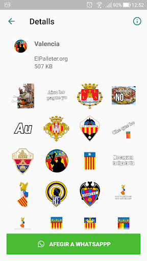 El paquet d'stickers valencianistes, creat per a tots els valencians. L'aplicació està continuament actualisant-se en noves pegatines.