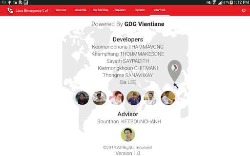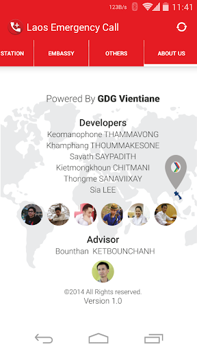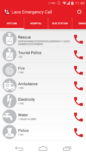 This App is created by a group of developers from GDG Vientiane and useful for lao people and especially for foreigners. When you downloaded the App you will have Hotline numbers for you such as Rescue number, Tourist Police, Ambulance, etc. Also it has Hospitals number, Bus Stations, Embassies in Vientiane. If you are lost in Laos don't worry this App will help you find the way. When you open the App, It will automatic knows where you are. It will show the direction from where you are to your destination. Besides, you can make a call immediately by just tap on the telephone icon. The app will ask for a confirm before calling.
