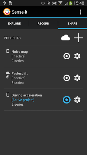 You can use your sensors to collect data for a project or investigation. You can set up "projects" by selecting the sensors you need and deciding on the rate at which they log data (e.g., samples per second). The Sense-it app will produce a log of the sensor data, visualize it in graphs, export it as a CSV file, so you can share it with others (e.g., through email). The data you collect could be further processed by using other software, such as spreadsheet programs.