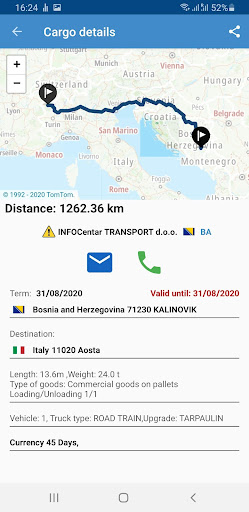 The most common proposals from this site the transportation of cargo from Bosnia, Serbia, Croatia, Slovenia, Hungary, Turky, as well as cargo to / from Western Europe and Russia.