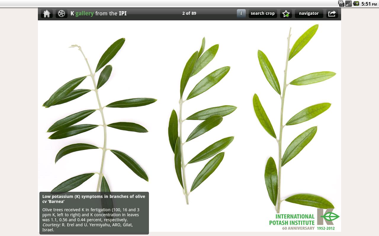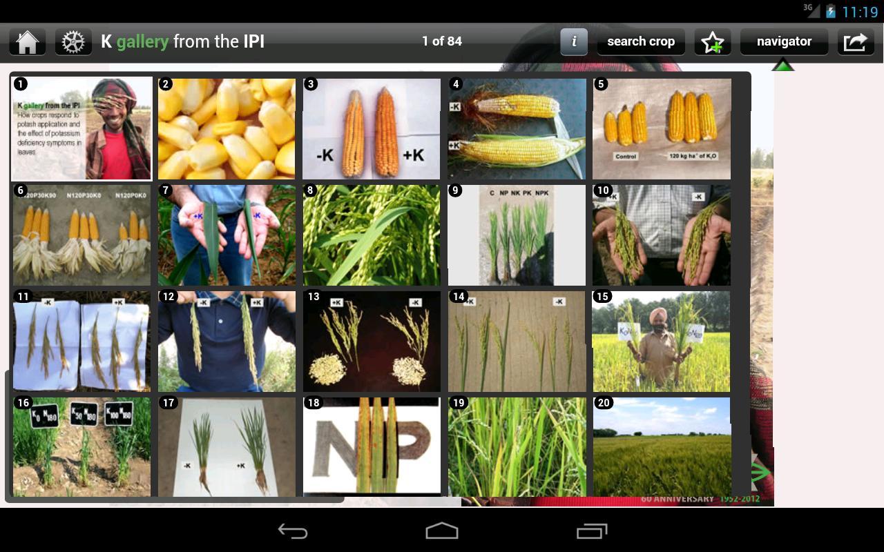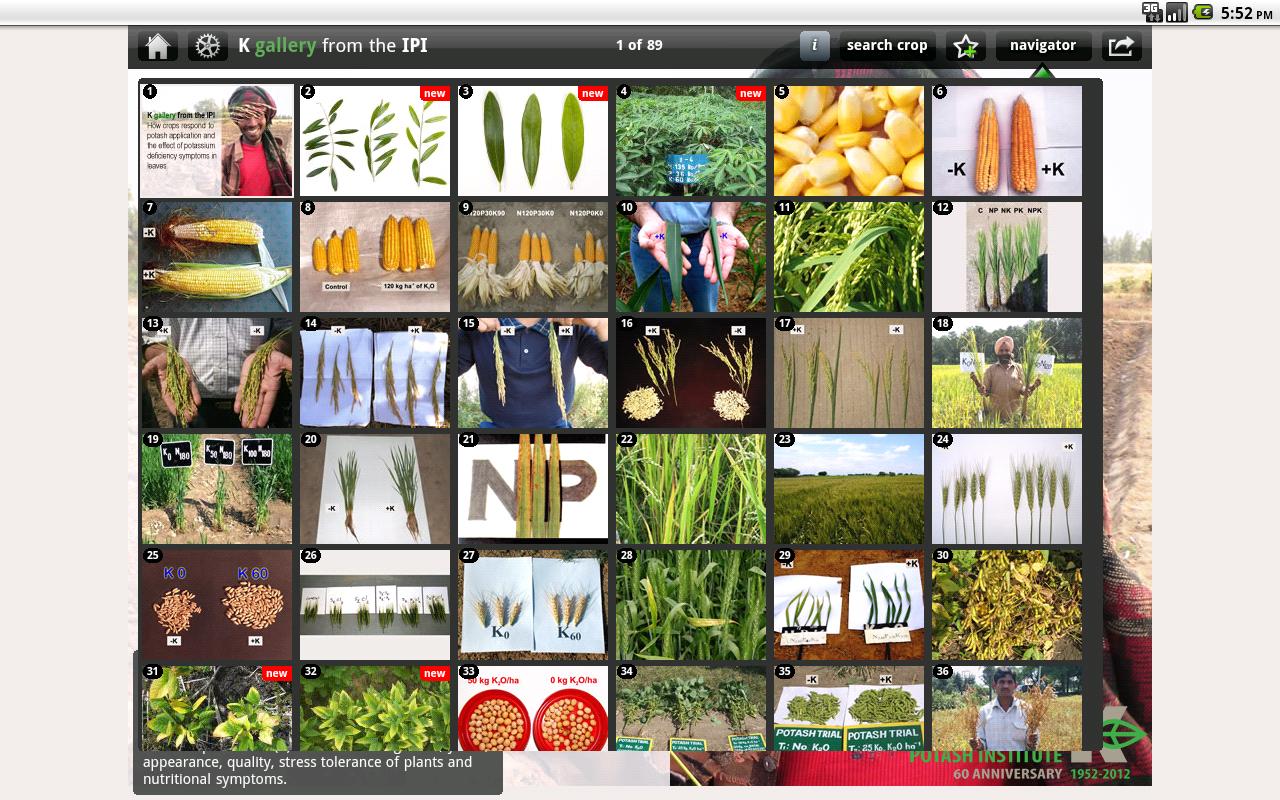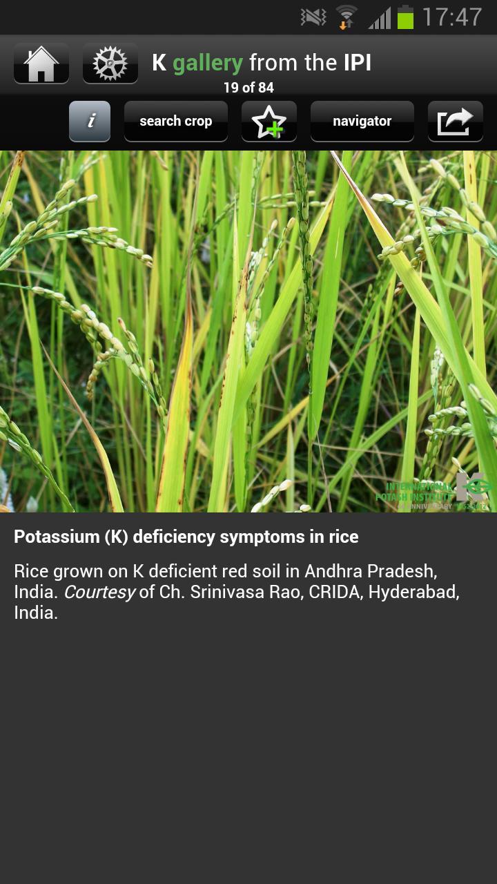 Descriptions on each slide, and tools to mark your favorites, and share pictures via e-mail, Twitter and Facebook are provided, as are tools to filter the images by crop, deficiency symptom, crop response, or how recently the image was added.