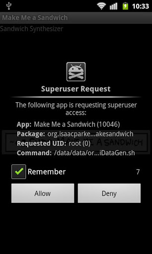 **The function that requires rooting can be simulated, as no permissions are really necessary to make a sandwich**