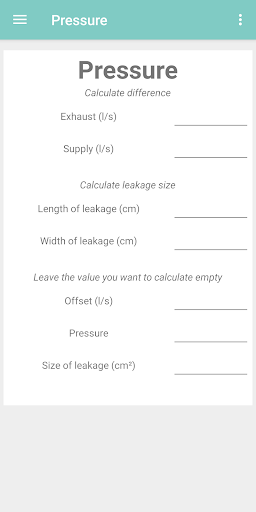 - Calculate roompressure with the helt of size of leakage and the present supply and exhaust