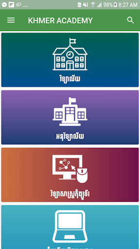 Khmer Academy is the first e-learning platform for knowledge sharing in Cambodia. It is developed by Korea Software HRD Center in 2015. All contents are in Khmer language for easy knowledge acquisition. Most contents are related to IT fields and plan to extend more topics. Our mission is to improve education environments of Cambodia by means of IT technologies. Khmer Academy will be a significant education platform which accumulates and shares all kinds of knowledge on internet.