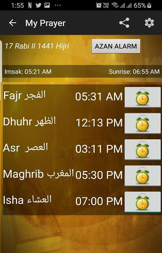 - Alerts/ Reminders for all the 5 prayers with Athan sound.