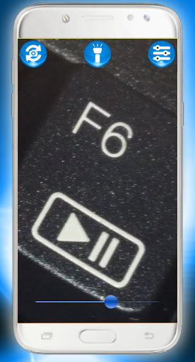 Use the camera as if it were a magnifying glass or use the front camera to see us in it, press on the screen to activate the brightness frame (useful in low light conditions).