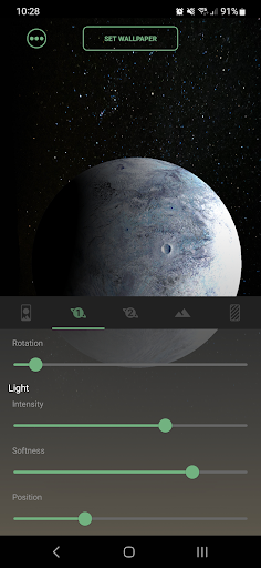The 3D Planet Space Live Wallpaper app enables you to fully personalize your live wallpaper experience on your home and lock screen.