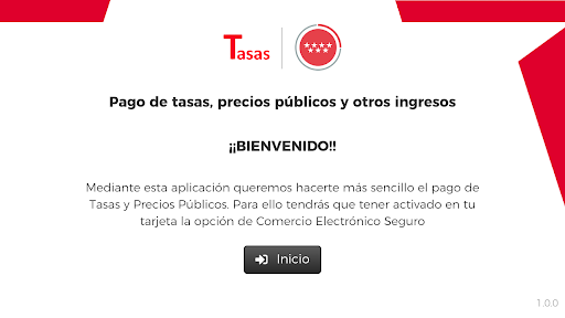 Pago Tasas Comunidad de Madrid es una aplicación destinada a hacer más sencillo y seguro el pago de Tasas, Precios Públicos y otros Ingresos de la Comunidad de Madrid mediante tarjeta de crédito o débito, con la opción de Comercio Electrónico Seguro activada.