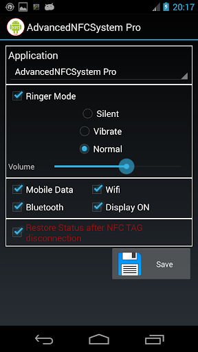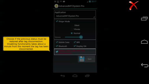 Advanced NFC System is the only application I found that keeps configured settings only when the NFC tag is connected to the phone, to restore the previous status is sufficient to disconnect the NFC tag .