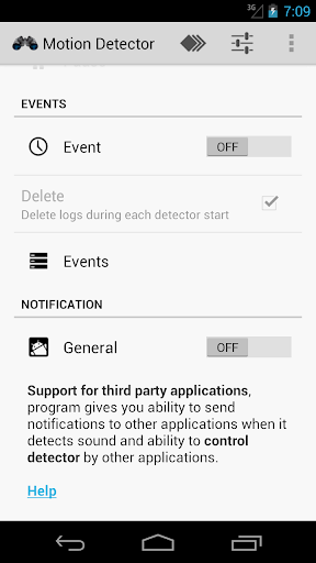 ● send notifications to other applications such as for example Tasker, when it detects movement