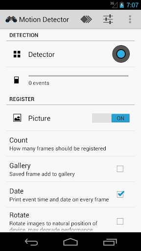 Change your device into a motion detector to detect motion for other apps such as Tasker or Automagic or as standalone detector to detect motion in your home and notify you in case of intrusion or monitor activity of your kids to notify you in case of dangare
