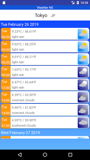Weather NS is a quick app for get temperature and weather of cities and locations. Weather NS allows you to look five days of forecasts of any location. You can save a list of location and you can change the cities as you want.