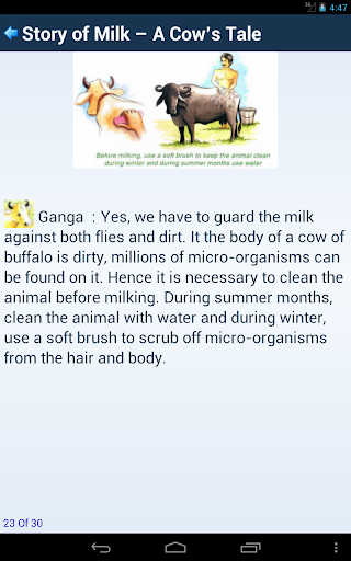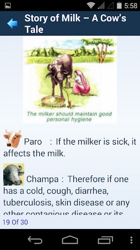 “Story of Milk A Cow’s Tale” is a story told by Ganga the cow to Banwari, her owner who was planning to sell Ganga because of her sudden illness. Ganga educated Banwari by telling him a story about how he can keep her disease free and healthy, and in-turn increase milk production.
