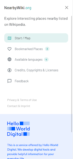 Our mission is to make your everyday life easier. NearbyWiki helps you find your way around your surroundings and explore the world, digitally with facts and details about sights as well as in real life with your own eyes.