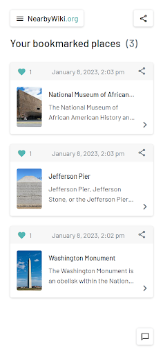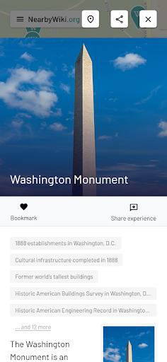 Bookmark your favorite places and fascinating Wikipedia articles as you explore.