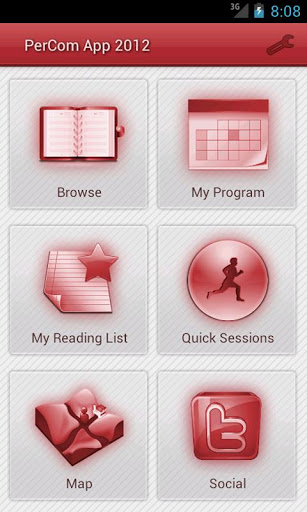 Originally developed during an Android course at the University of Munich (LMU) for an earlier conference, the application has now been improved and adapted to PerCom 2012 by part of the original team for its first official deployment.