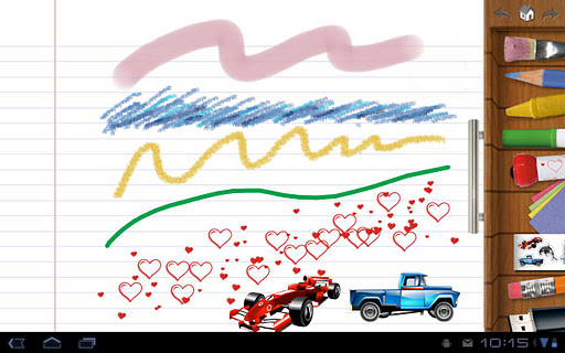 Create your own art using photo-realistic crayons, markers, paint brushes, colored pencils, stickers, roller pens and more! Save your artwork to your Drawing Pad Album and reload it later to keep working on your masterpiece! Share your work via any app that accepts a picture (like Facebook, Twitter, Flickr, Picasa, ect.)
