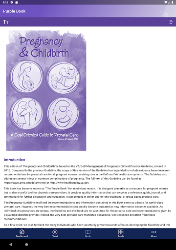 Our comprehensive set of pregnancy tools makes it easy to track your pregnancy, log information, and share with your provider. This is a mobile companion to The Purple Book, a complete guide to pregnancy in the Department of Veterans Affairs and the Department of Defense.