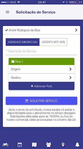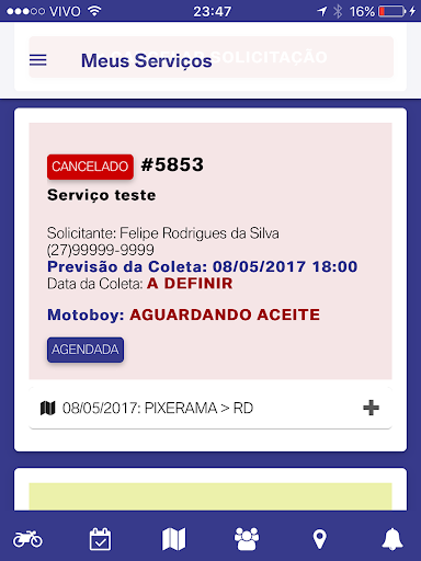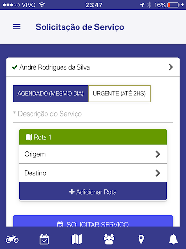 Na plataforma, nossos clientes poderão solicitar coletas agendadas e urgentes. O motoboy mais próximo aceitará ou recusará o serviço com apenas um clique e o processo poderá ser acompanhado totalmente pelo aplicativo, com todas as mudanças de status e rastreamento.