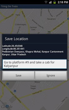 Tring On Train is a Location Triggered Alarm. Specify your destination on the map and the app notifies you with an alarm, when you are within 1km of your destination.