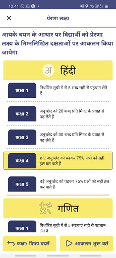 Prerna Lakshya App is a product of the Department of School Education, Government of Uttar Pradesh (India) under Mission Prerna. The application can be used by teachers/ parents/ guardians to test a student’s learning levels against competencies of the Prerna Lakshya (Class 1-5).