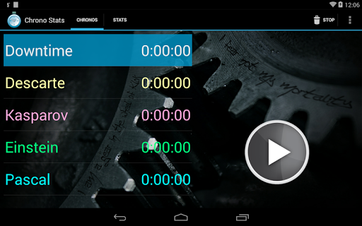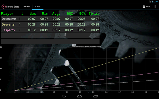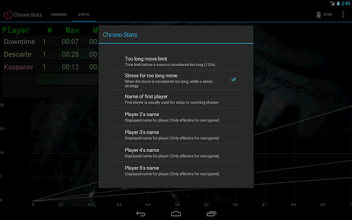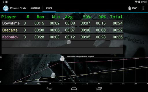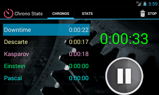 Chrono Stats is a timer for board games. It helps measuring the time spent by each player, move by move.
