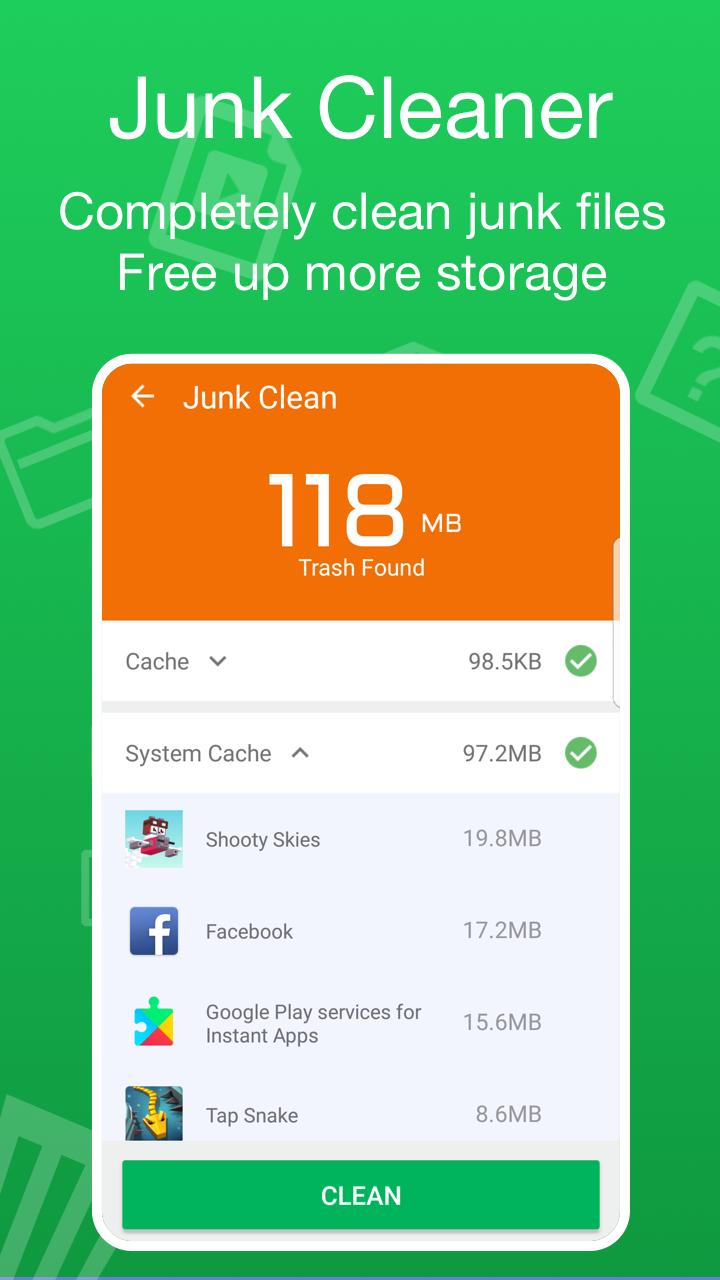 You can quickly analyzes storage space on your Android device and identifies all unnecessary data, delete cache and residual files to reclaim storage, boost speed and improve the performance of your device and SD card.