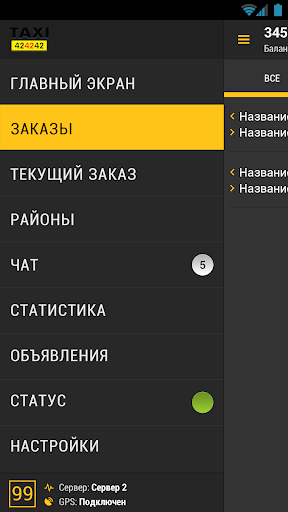 Является полнофункциональным решением водителя информационной службы заказа такси и грузоперевозок